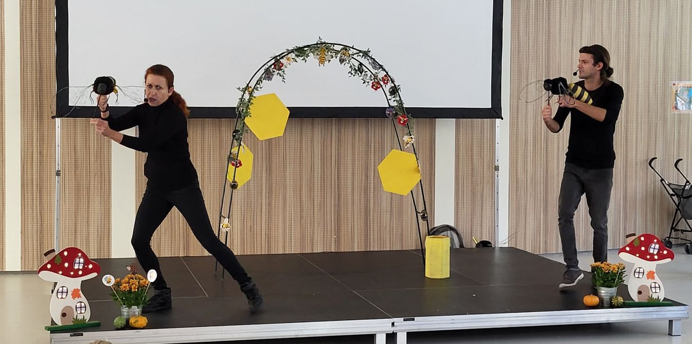 A Nemzeti Közszolgálati Egyetem A méhek meséje címmel idén először szervezett őszi családi napot az egyetemi polgárok és családtagjaik számára. A családi napon nagyon sok izgalmas programon vehettek részt a campuszra látogatók. Ezek egyike volt a méhek életéről szóló bábjátékunk is, mely a méhek mindenapi életéről szól.
